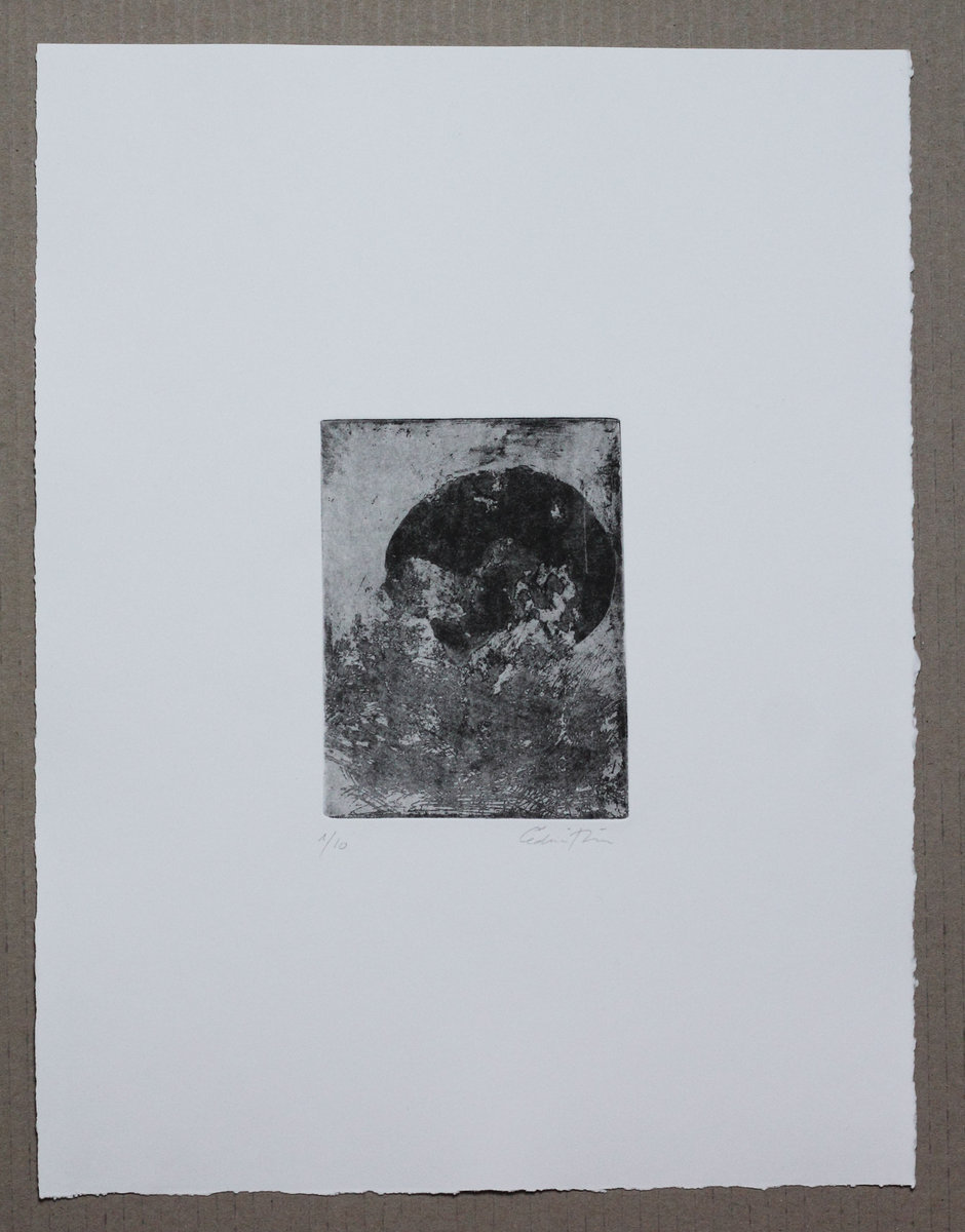 Black and white print on canvas textured paper with 23 carat gold leaf finish